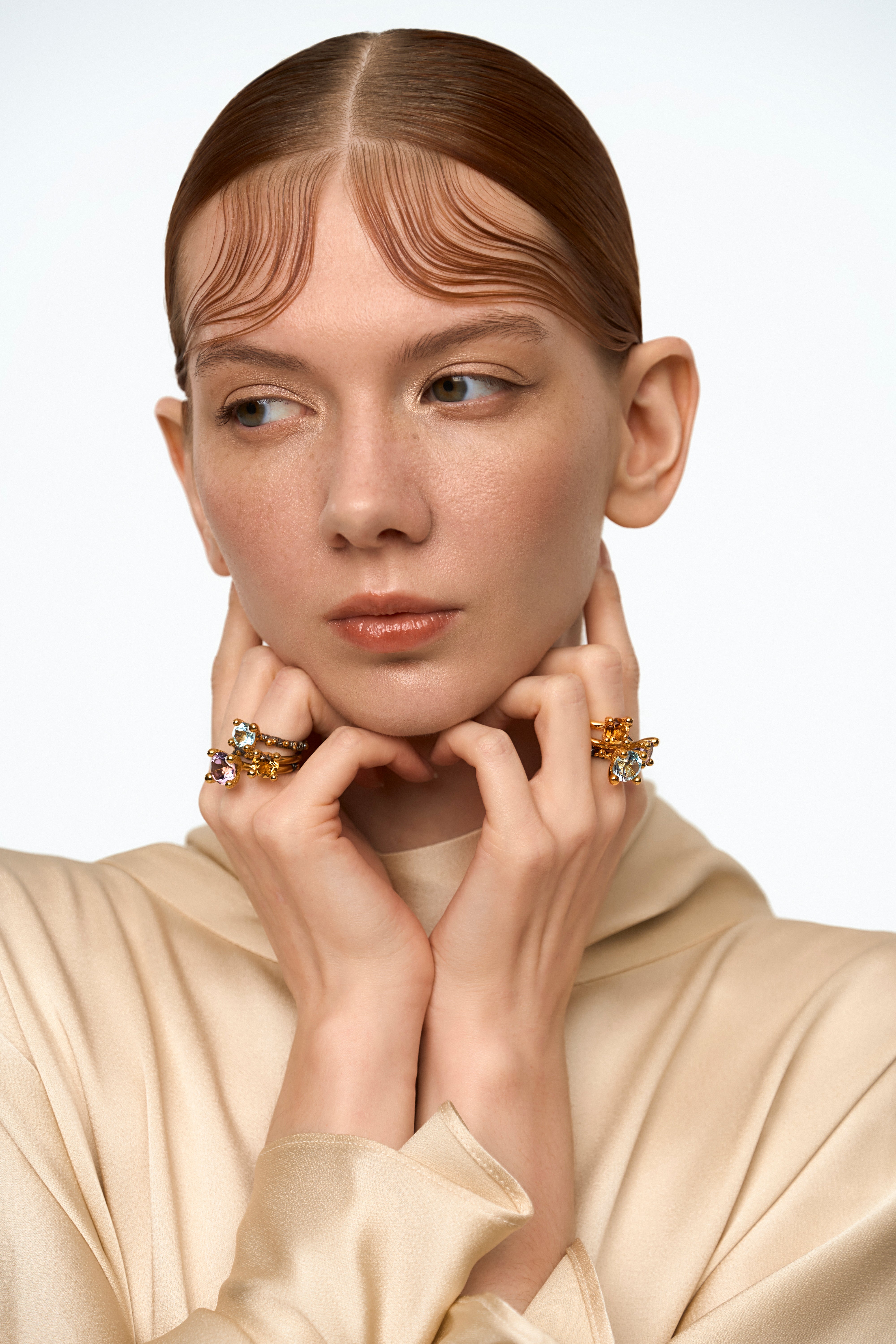 Experiment and create your own unique compositions by combining your ring with round and square stones of different diameters and colours.